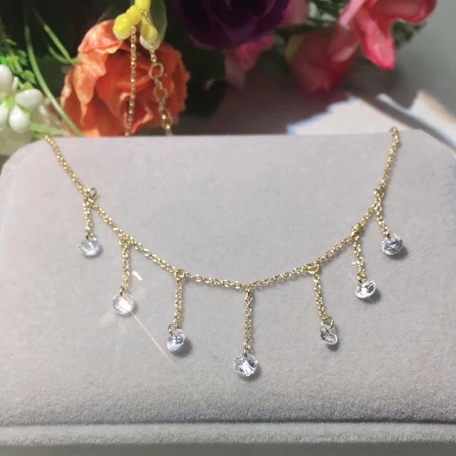 Trending New Fashion 925 Sterling Silver 18K Gold Plated Brilliant Cubic Zirconia Dropped Choker Necklace for Weddings